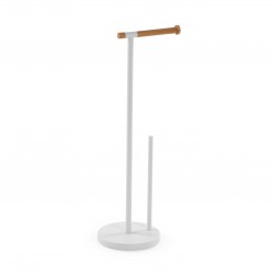 WHITE BAMBOO TOILET ROLL HOLDER Referencia: 22250205 Medidas: __x__x68 Ø20 cm. Material: Bamboo Iron Packaging: WHITE BOX WITH STICKER Info: 0.7487 kg.