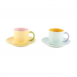 SET OF 6 PASTEL COFFEE CUPS WITH SAUCERS