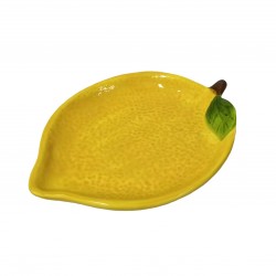 LEMON PLATTER Referencia: 22110141 Medidas: 15x12x2 cm. Material: Ceramic Packaging: BROWN BOX Info: 0.152778 kg. VERSA BACKSTAMP BARCODE LABEL LEMON DESING YELLOW COLOR
