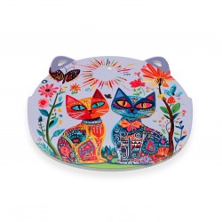 LILAC CATS TABLE MAT Referencia: 21900193 Medidas: 20x20x__ cm. Material: Ceramic Packaging: WHITE BOX Info: Cork base