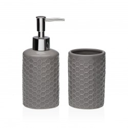 LIGHT GREY SET 2 BATHROOM Referencia: 22110071 Medidas: 6.8x6.8x17 cm. Material: Dolomite Packaging: WHITE BOX Info: Tumbler 6,8x6,8x10,5cm Dispenser; 6,8x6,8x17cm