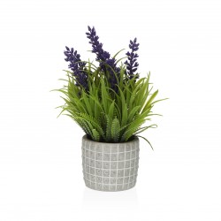 LAVENDER PLANT WITH POT Referencia: 20180005 Medidas: 8x8.5x20 cm. Material: Cement Plastic Packaging: BROWN BOX Info: Plastic lavender in cement pot