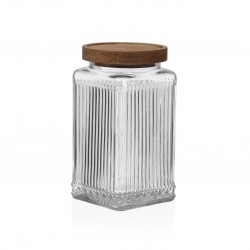 SQUARE JAR WITH ACACIA LID 900ML Referencia: 22500072 Medidas: 12x8x14.3 cm. Material: Glass Packaging: BROWN BOX Info: Borosilicate and acacia lid