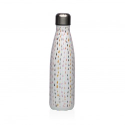 STRIPES STAINLESS STEEL BOTTLE Referencia: 22080101 Medidas: 7x7x27 cm. Material: Steel Packaging: POLYBAG Info: Double wall
