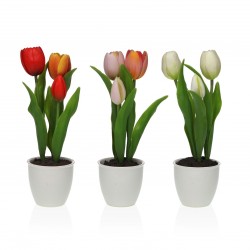 POTTED ASSORTED TULIP FLOWER Referencia: 20180004 Medidas: 8x8.5x25.5 cm. Material: Ceramic Plastic Packaging: BROWN BOX Info: Plastic tulip in ceramic pot Assorted in 3 colours of tulips