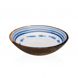 LARGE OCEANIC ENAMELLED BOWL Referencia: 17370602 Medidas: 24x24x7 cm. Material: Mango wood Porcelain Packaging: BROWN BOX Info: No dishwhaser and microwave safe