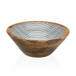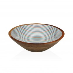 LARGE STRIPES BOWL 30CM DIA. Referencia: 17370611 Medidas: 30x30x10 cm. Material: Mango wood Porcelain Packaging: BROWN BOX Info: No dishwhaser and microwave safe