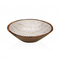LARGE NORDIC DROPS ENAMELLED BOWL Referencia: 17370596 Medidas: 24x24x7 cm. Material: Mango wood Porcelain Packaging: BROWN BOX Info: No dishwhaser and microwave safe