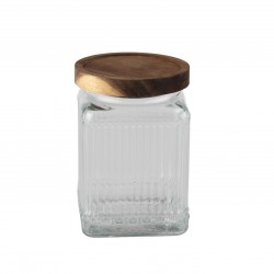 SQUARE JAR WITH ACACIA LID 900ML Referencia: 22500072 Medidas: 12x8x14.3 cm. Material: Glass Packaging: BROWN BOX Info: Borosilicate and acacia lid
