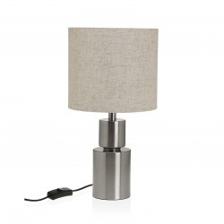 TARKO SILVER TABLE LAMP Referencia: 10700126 Medidas: 12x12x54 cm. Material: Metal Textile Packaging: VERSA BROWN BOX Info: Lampshade:19x35x21cm Base:(10x20)x33cm Voltaje: 40W Bombilla: E27