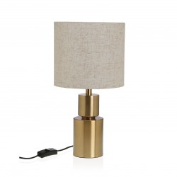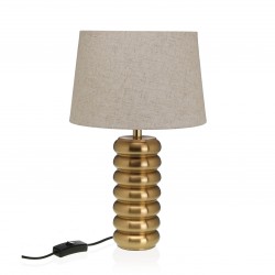 TARKO GOLD TABLE LAMP Referencia: 10700127 Medidas: 12x12x54 cm. Material: Metal Textile Packaging: VERSA BROWN BOX Info: Lampshade:19x35x21cm Base:(10x20)x33cm Voltaje: 40W Bombilla: E27
