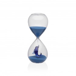 DOLPHIN SAND TIMER 30MIN Referencia: 22190003 Medidas: 8x8x20 cm. Material: Glass Packaging: POLYBAG Info: Borosilicate glass and sand
