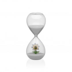 FLOWER SAND TIMER 15MIN Referencia: 22190010 Medidas: 6.5x6.5x16 cm. Material: Glass Packaging: POLYBAG Info: Borosilicate glass and sand