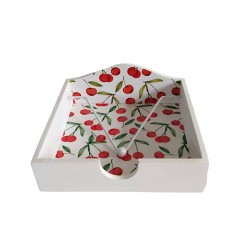 CHERRIES NAPKIN HOLDER Referencia: 21920343 Medidas: 18x18x7 cm. Material: Iron MDF Wood Packaging: POLYBAG Info: Certificado: FSC Own design