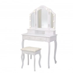 WHITE DRESSING TABLE WITH STOOL AND LED LIGHTS
