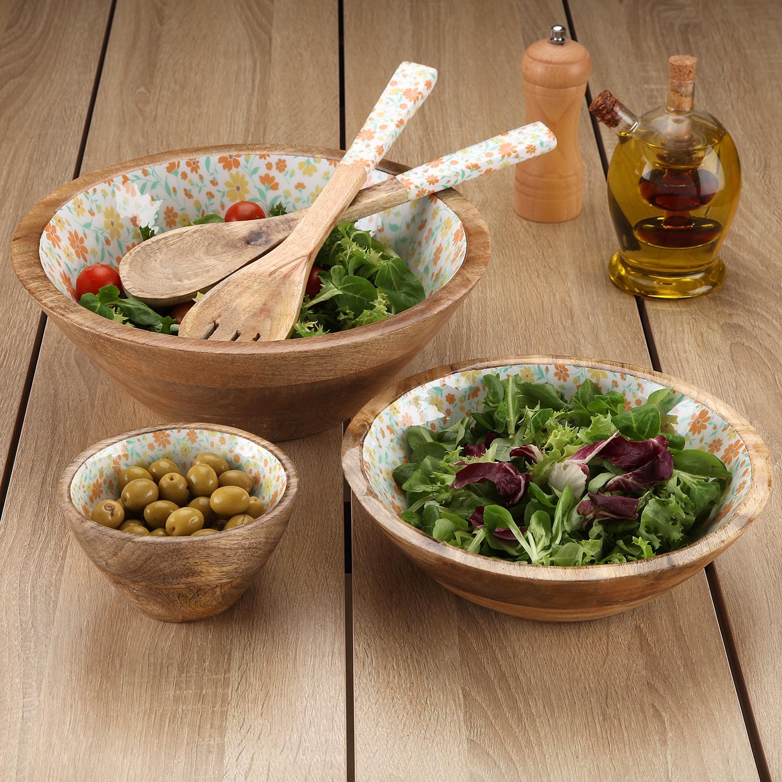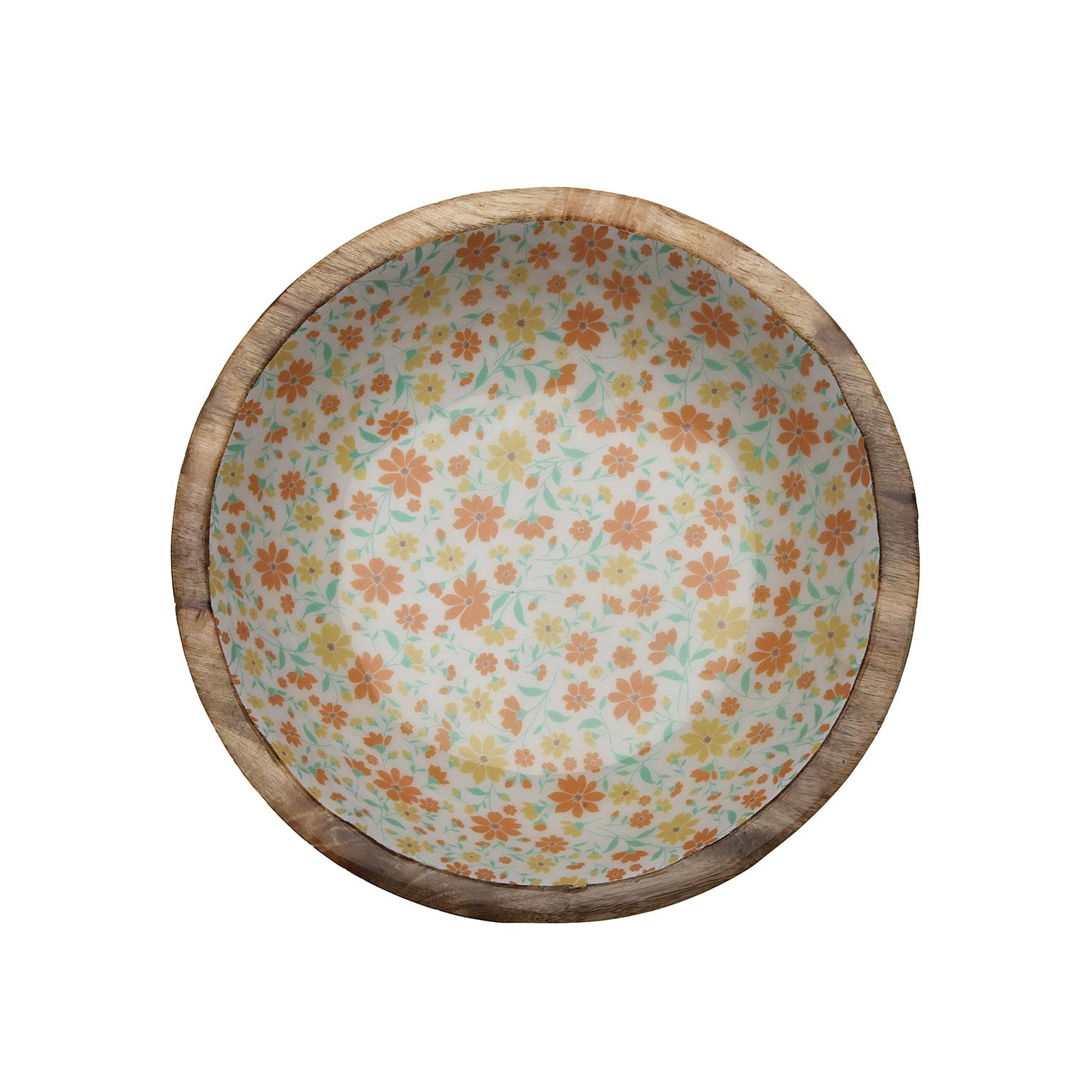 Crafted from durable mango wood, this bowl features a beautiful floral ceramic interior design, combining rustic charm with contemporary flair.
