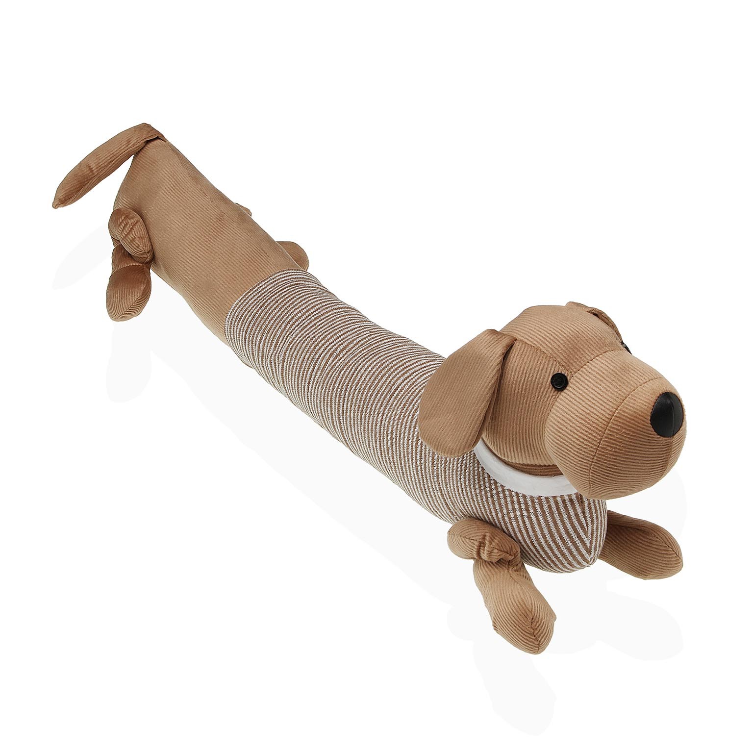 Enhance home spaces with the charming Dog Doorstop featuring a striped shirt.