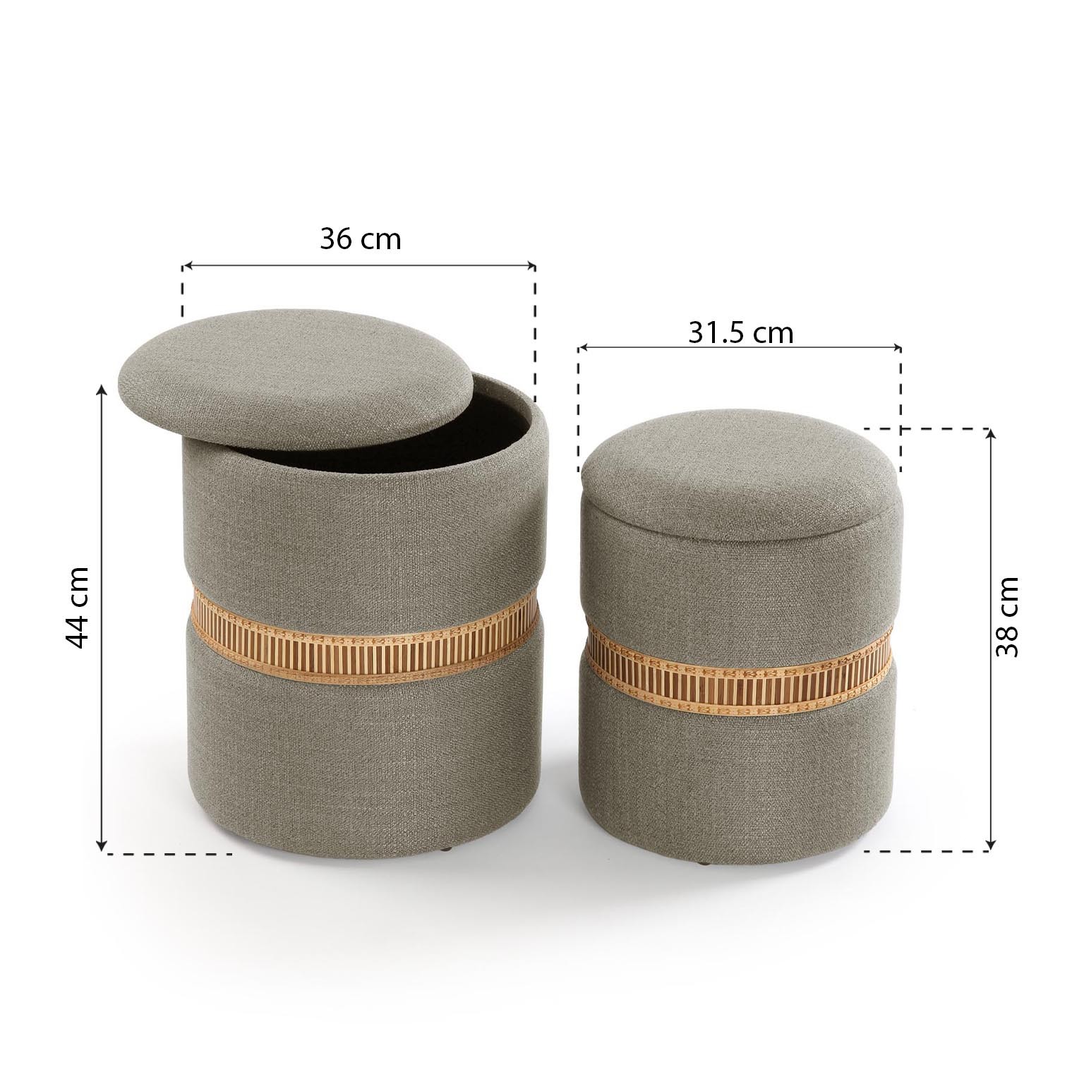 Enhance any home space with this set of 2 grey bamboo ring storage pouffes.