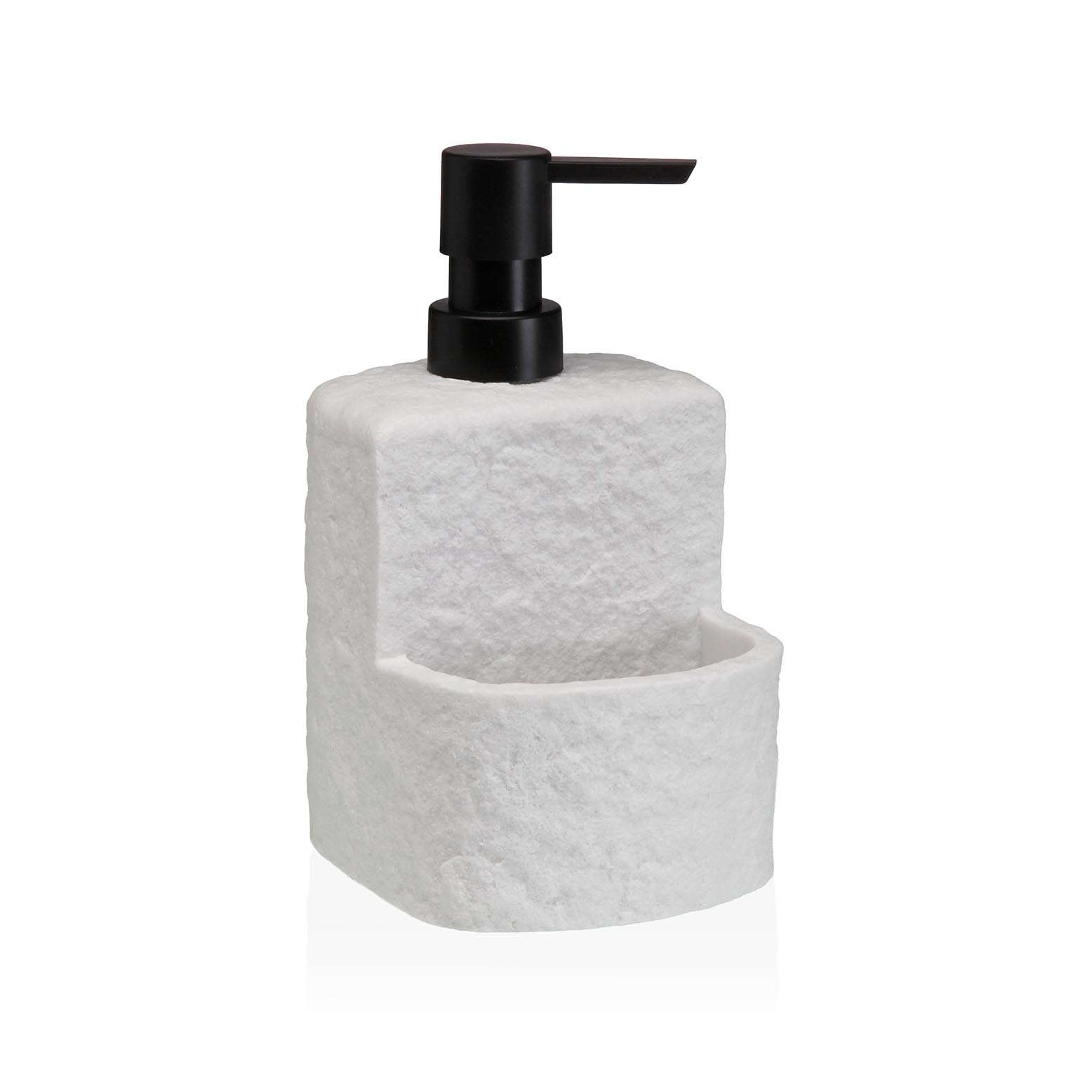 Crafted from durable resin, this dispenser stands at 17,5 cm tall and features a sleek white ceramic body complemented by a black pump mechanism.