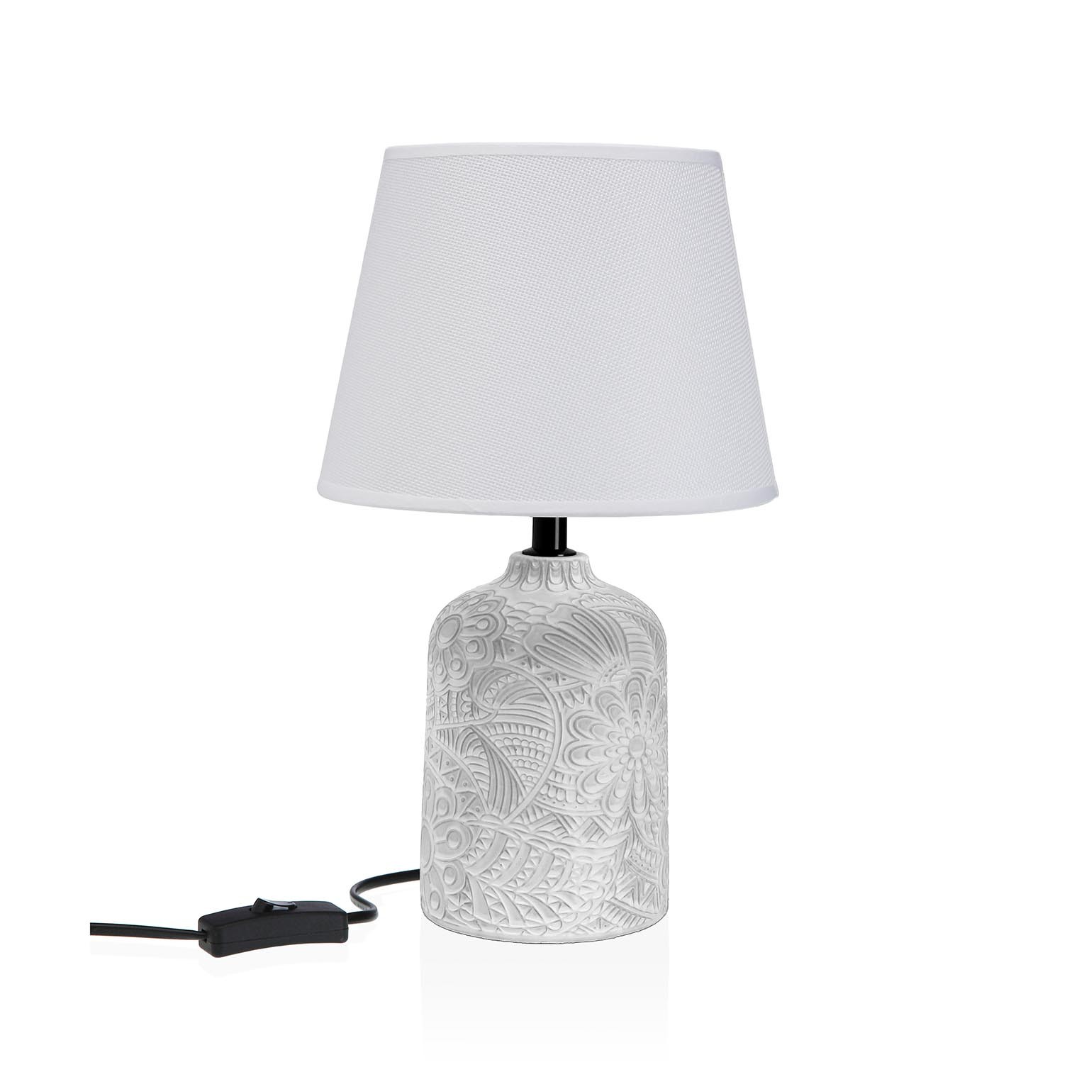 Crafted from durable ceramic with a fabric lampshade, this lamp stands at 34 cm tall and features a 13,5 x 13,5 cm base.