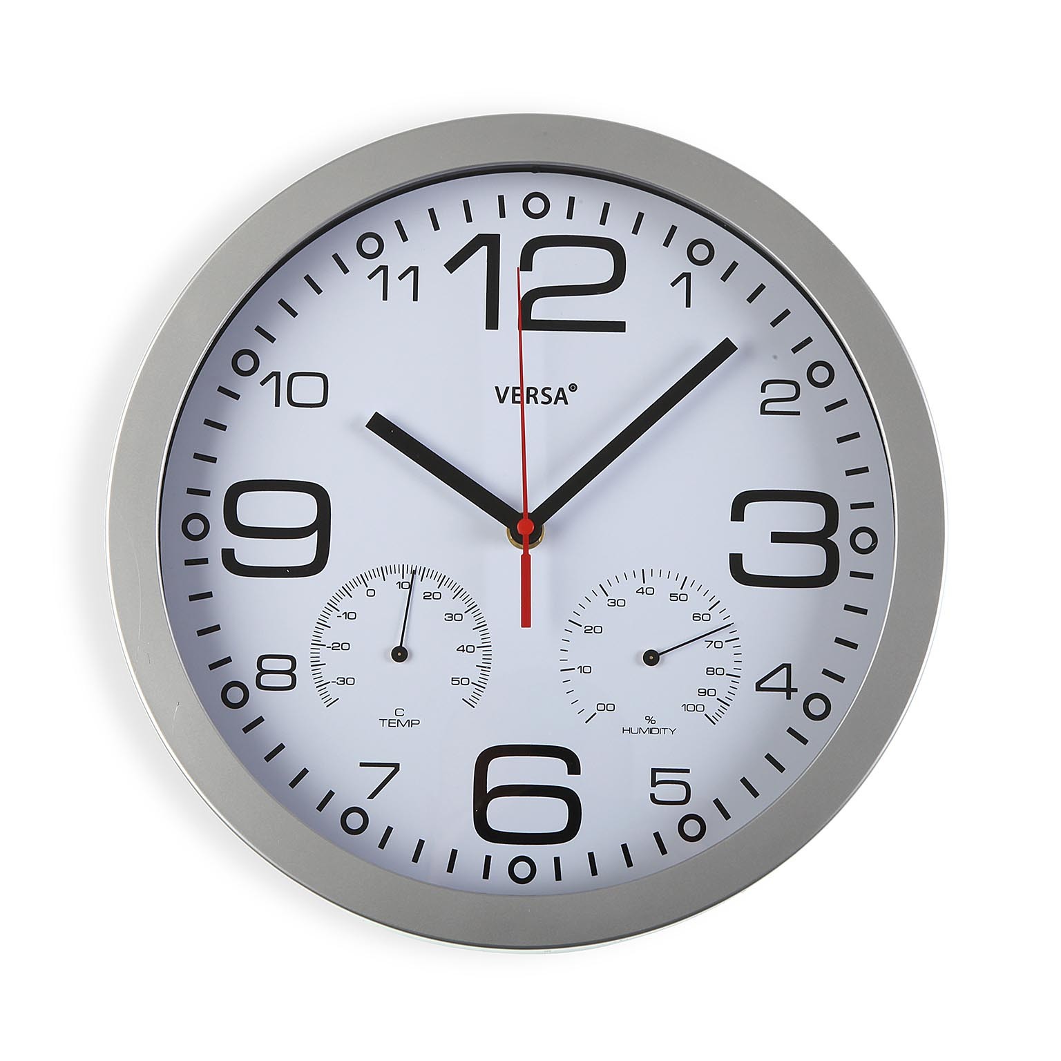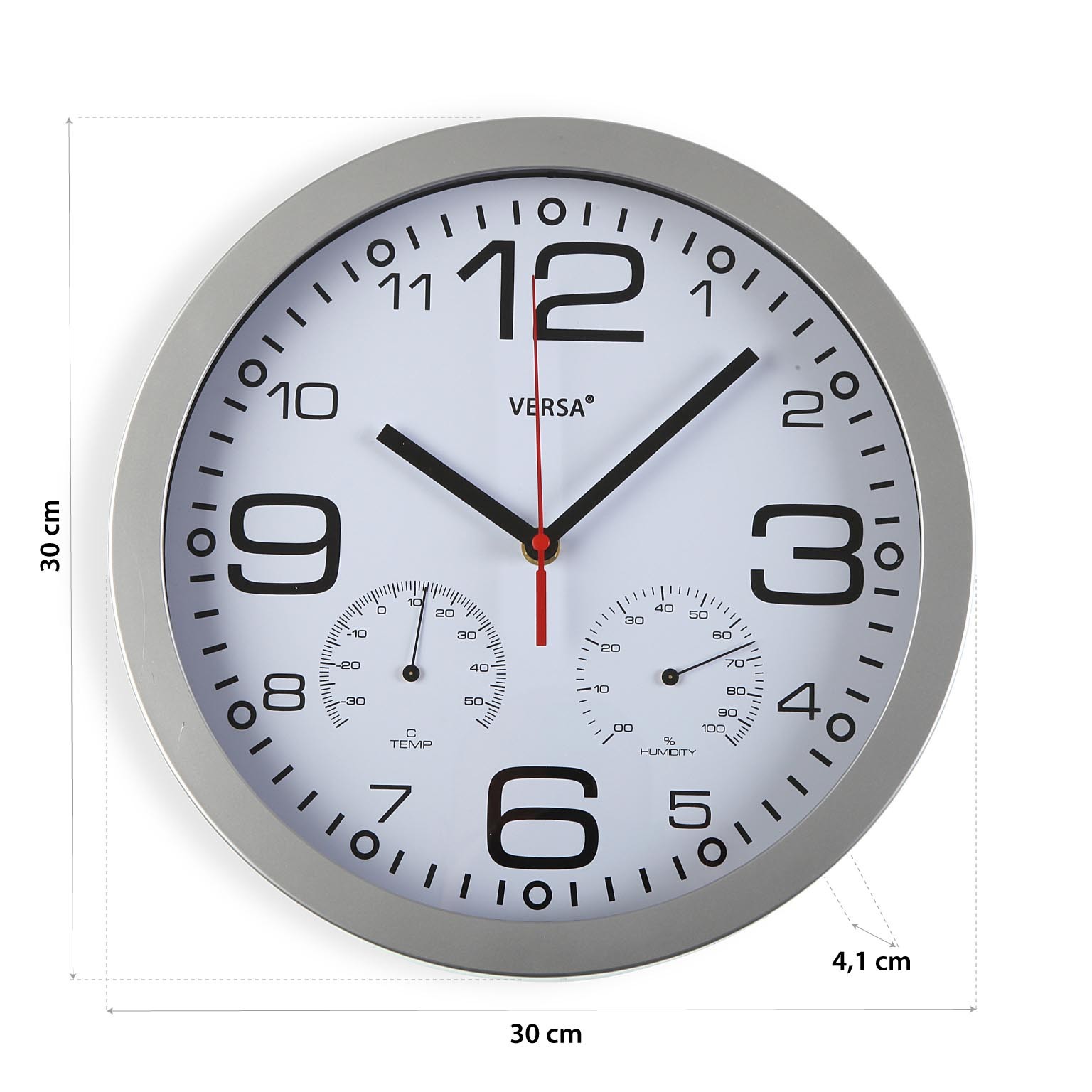 Plastic wall clock with thermometer and hygrometer