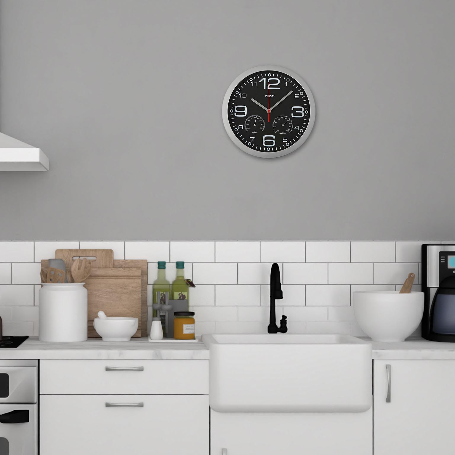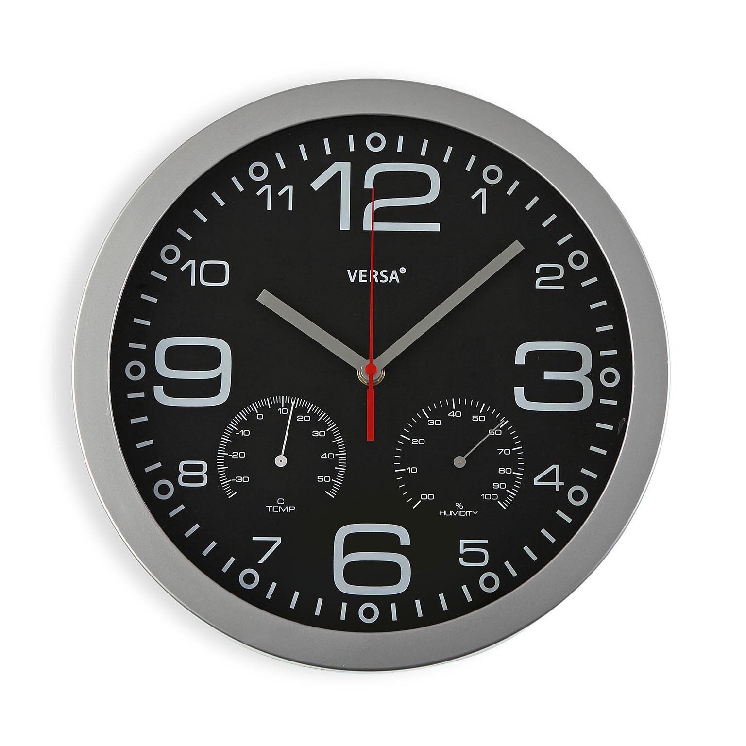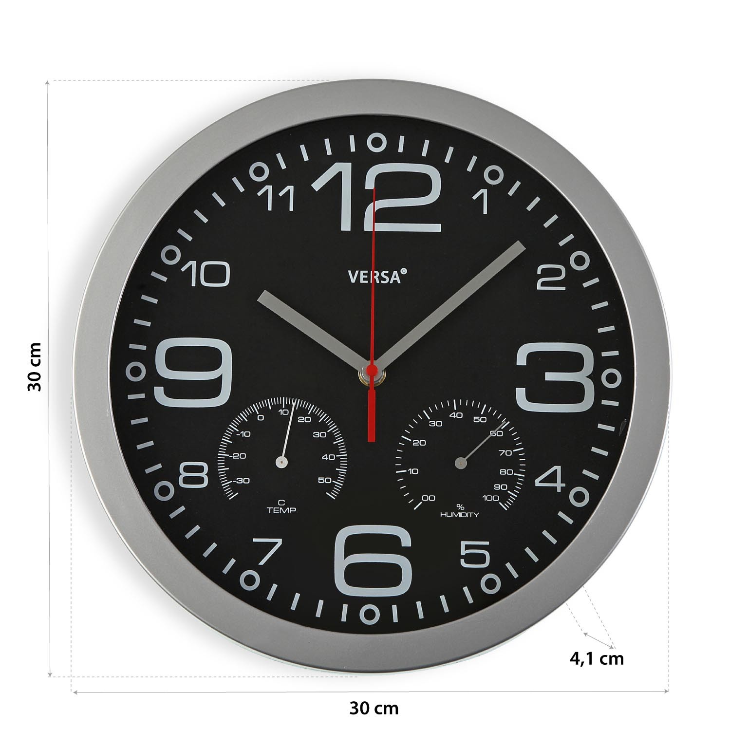 Plastic wall clock with thermometer and hygrometer
