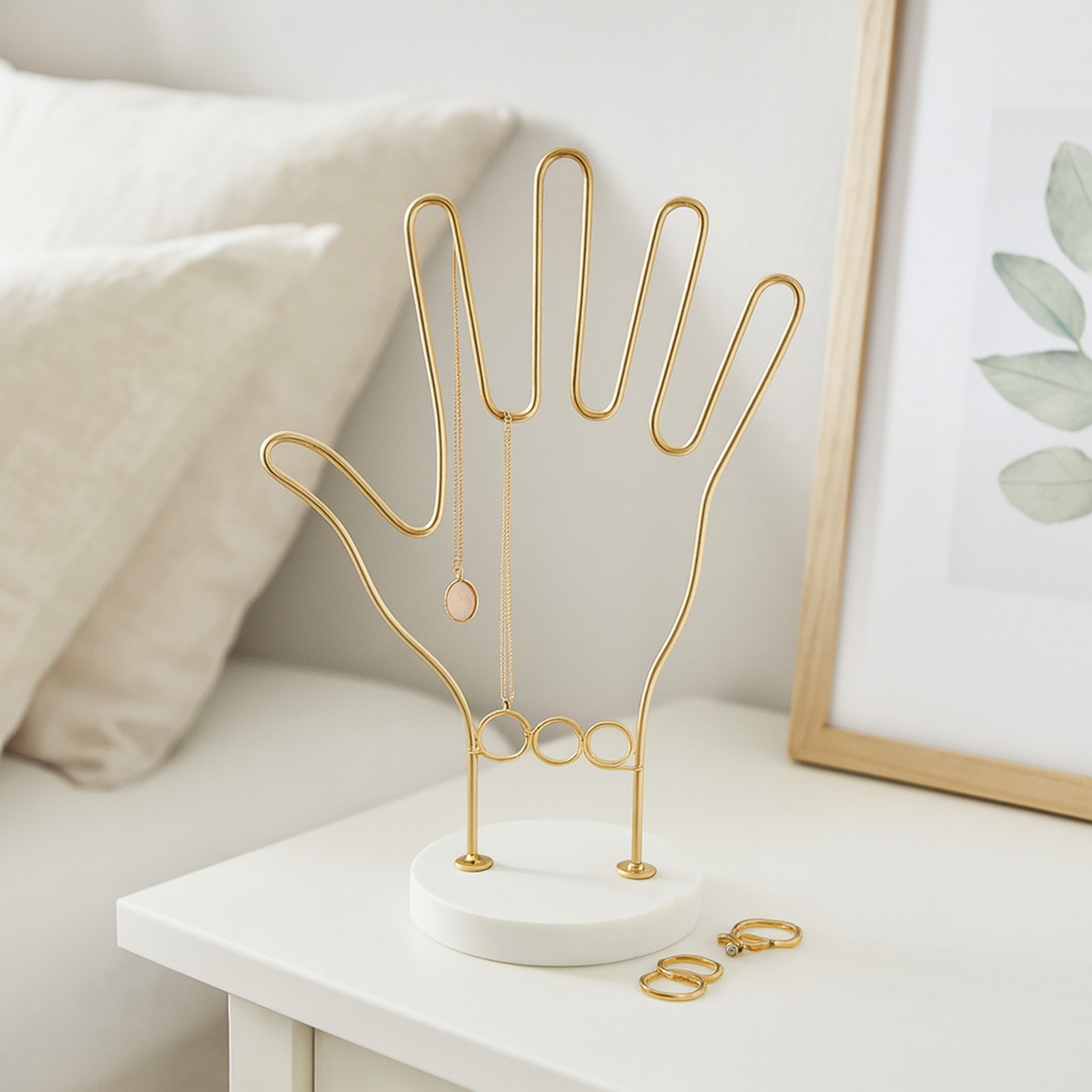 Elevate home decor with the Gold Metal Hand-Shaped Jewellery Box, a striking organiser that marries functionality with modern design.