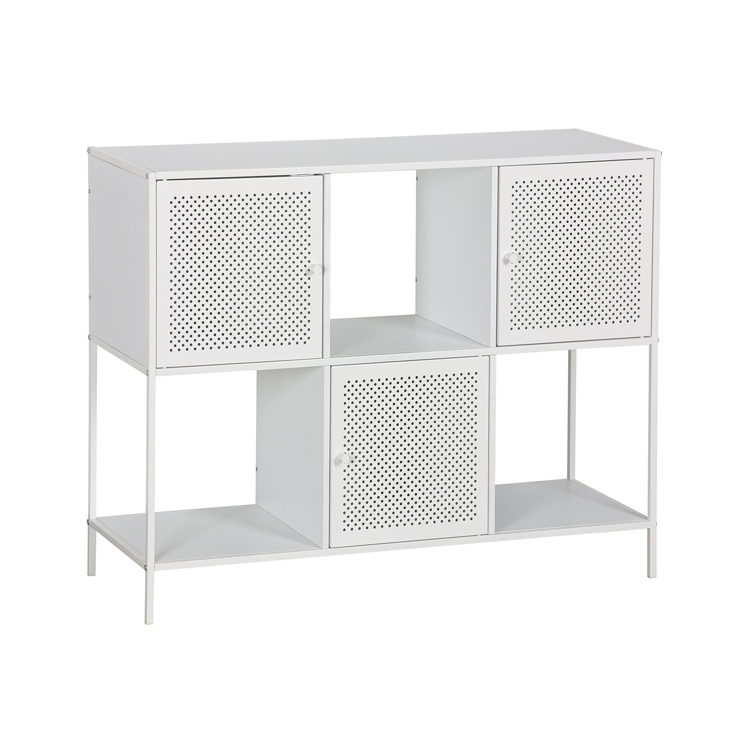 Crafted from durable MDF wood and metal, this sideboard features a sleek white finish that complements contemporary decor.
