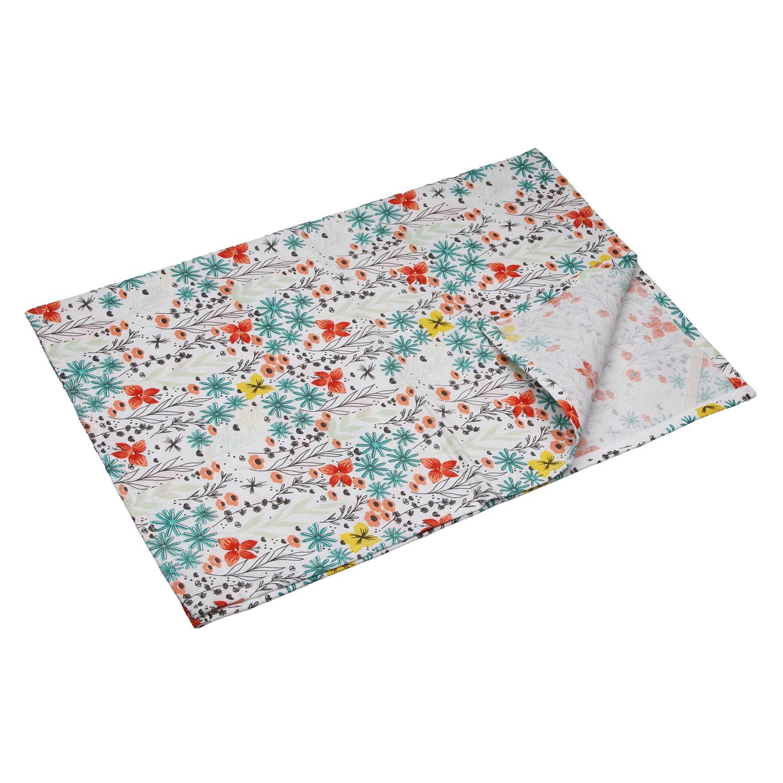 This vibrant towel features a delightful mix of red, yellow, green, and white floral patterns, embodying a Mediterranean decorative style.