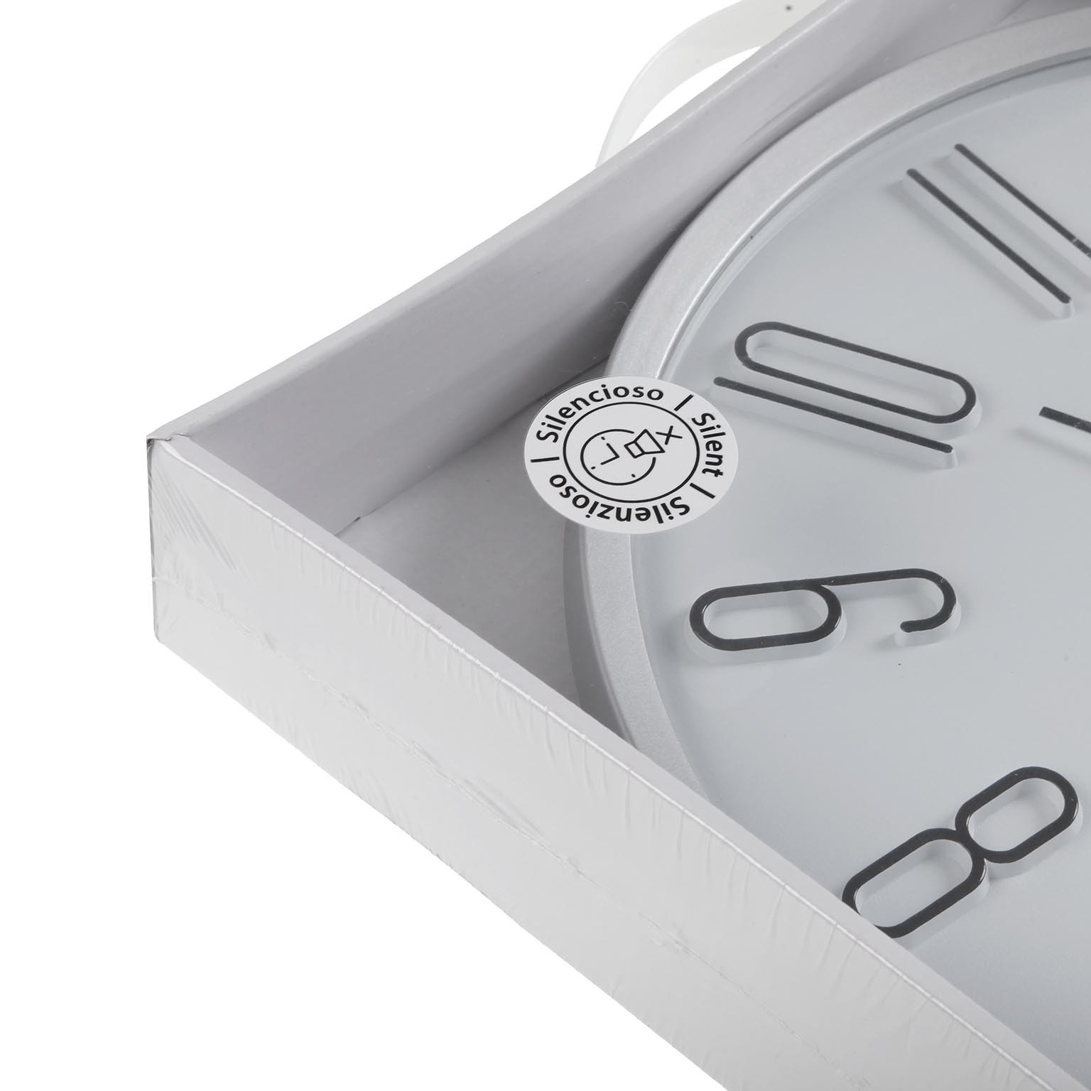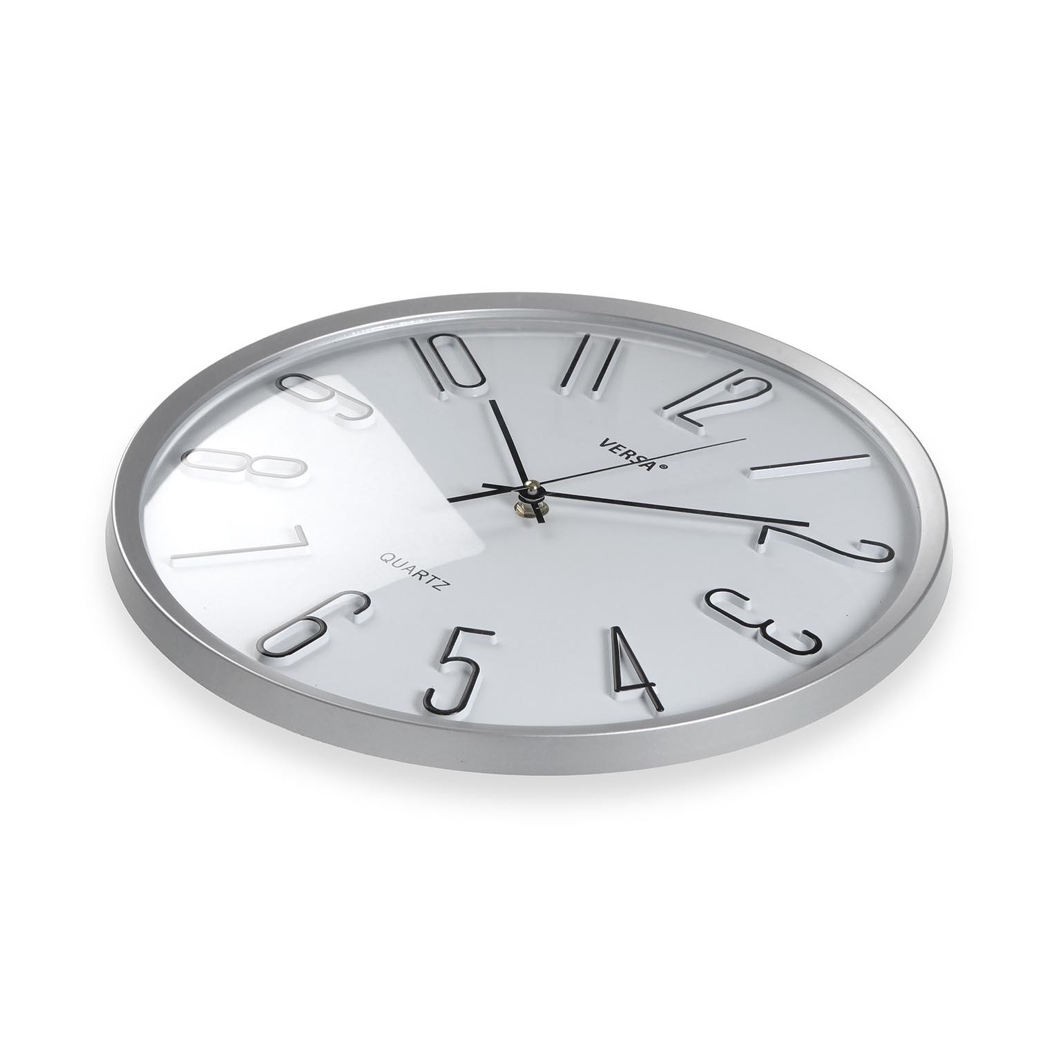Crafted from durable plastic, it features a sleek glass face and elegant metal hands, ensuring both functionality and style.