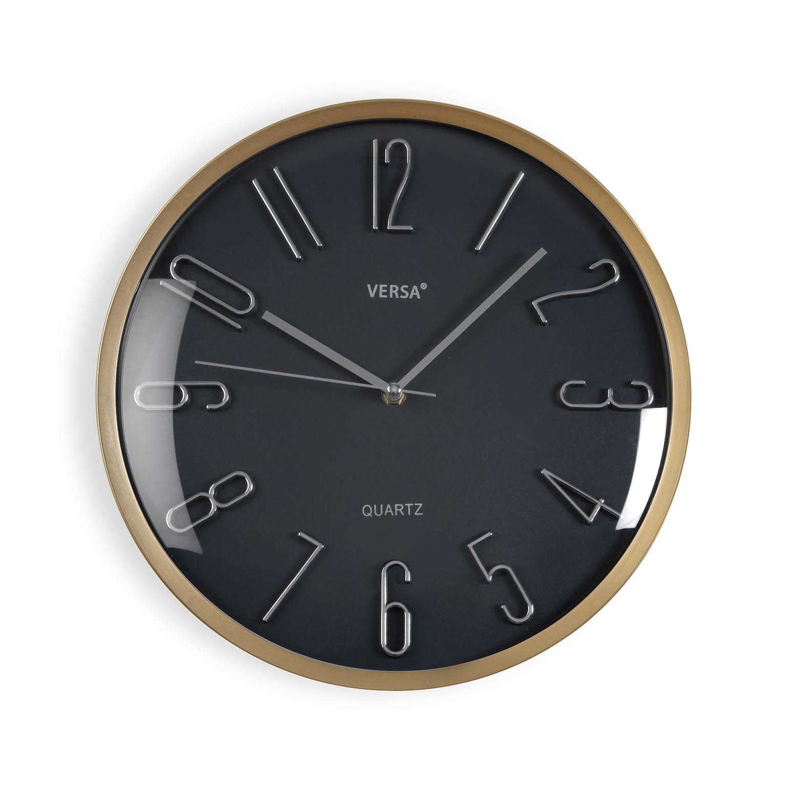 Crafted from durable plastic, it features a sleek glass face and striking black metal hands, making it a functional yet stylish addition to any decor.