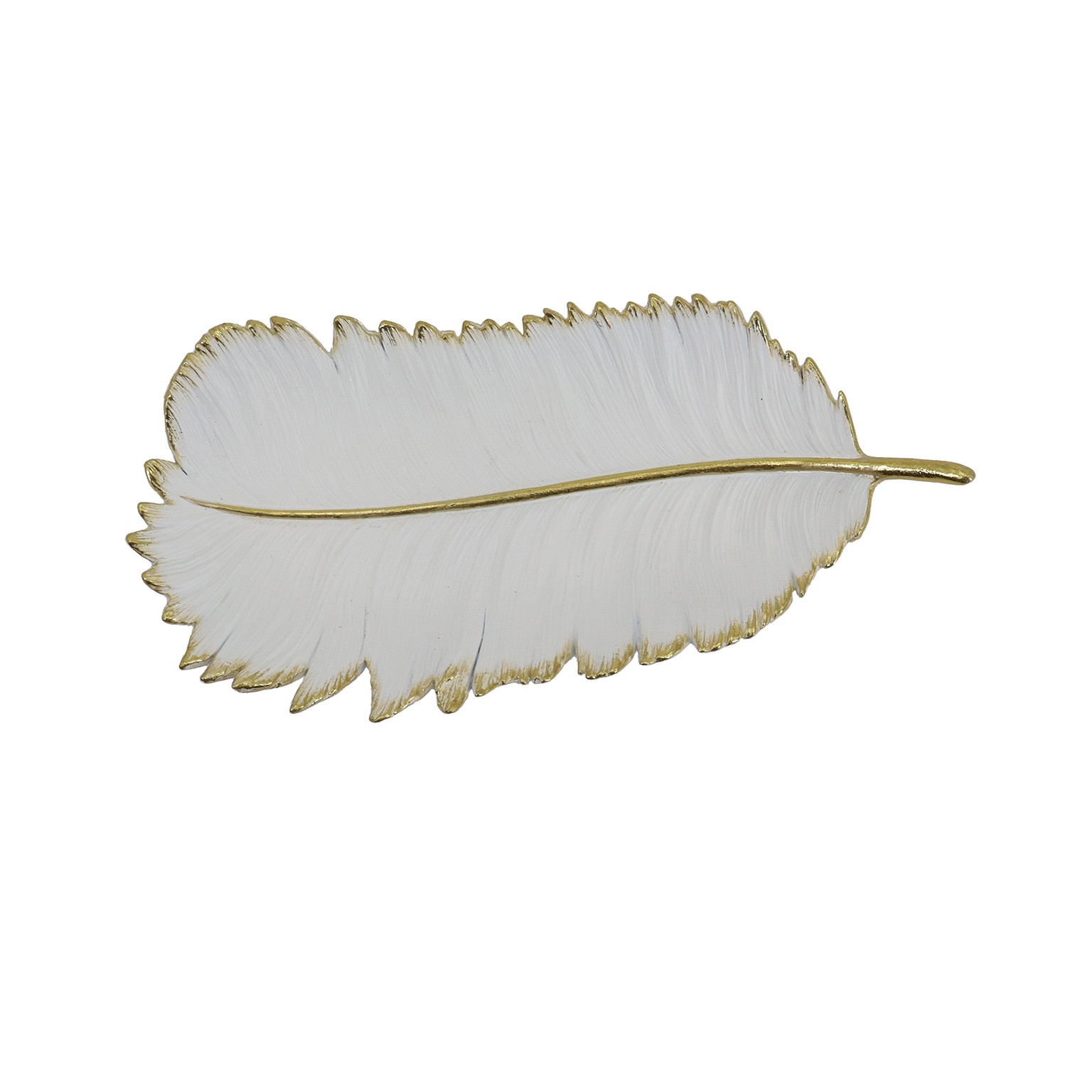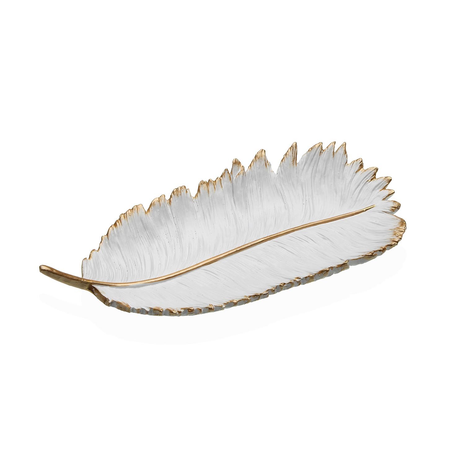 Measuring 4,2 cm in height, 13 cm in width, and 27 cm in length, this modern and minimalist piece features an elegant white leaf design accented with subtle gold detailing.