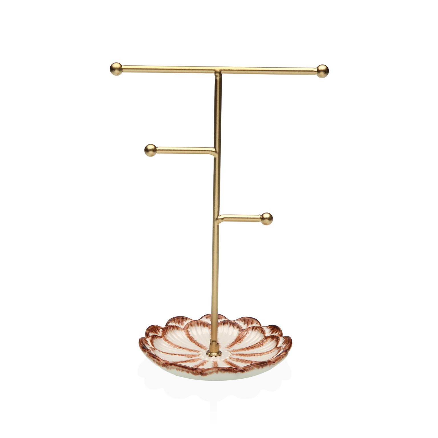 Elevate home decor with the Gold Jewellery Holder featuring a charming flower base.