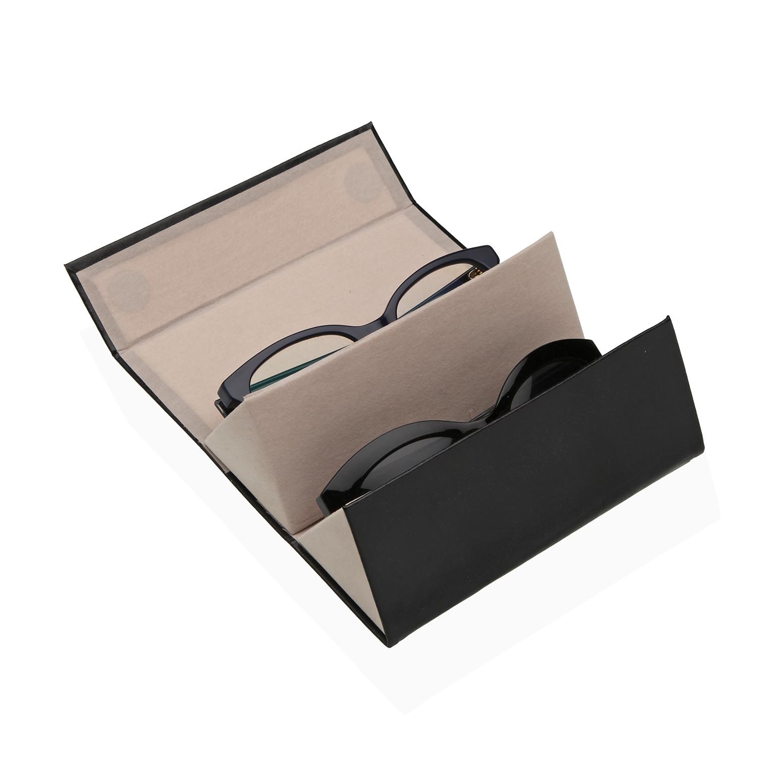 Elevate home decor with this sleek Black Double Glasses Case, expertly crafted from durable synthetic leather, cardboard, and textile.