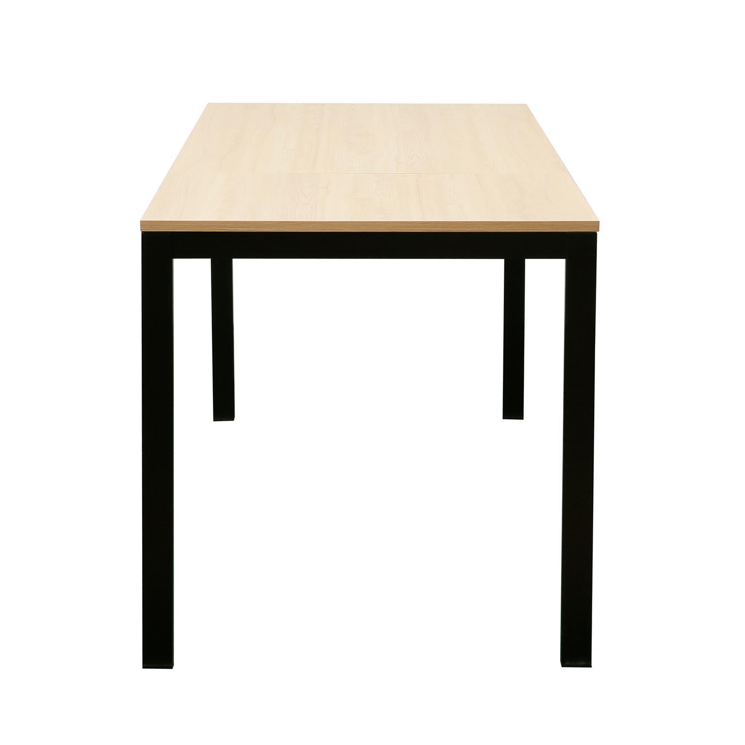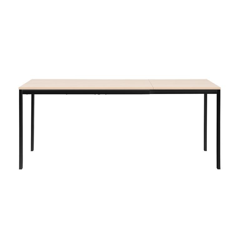 Crafted from durable melamine with a sleek powder- coated metal frame, this table measures 75 cm in height, 74 cm in width, and extends to 180 cm in length, accommodating various dining needs.