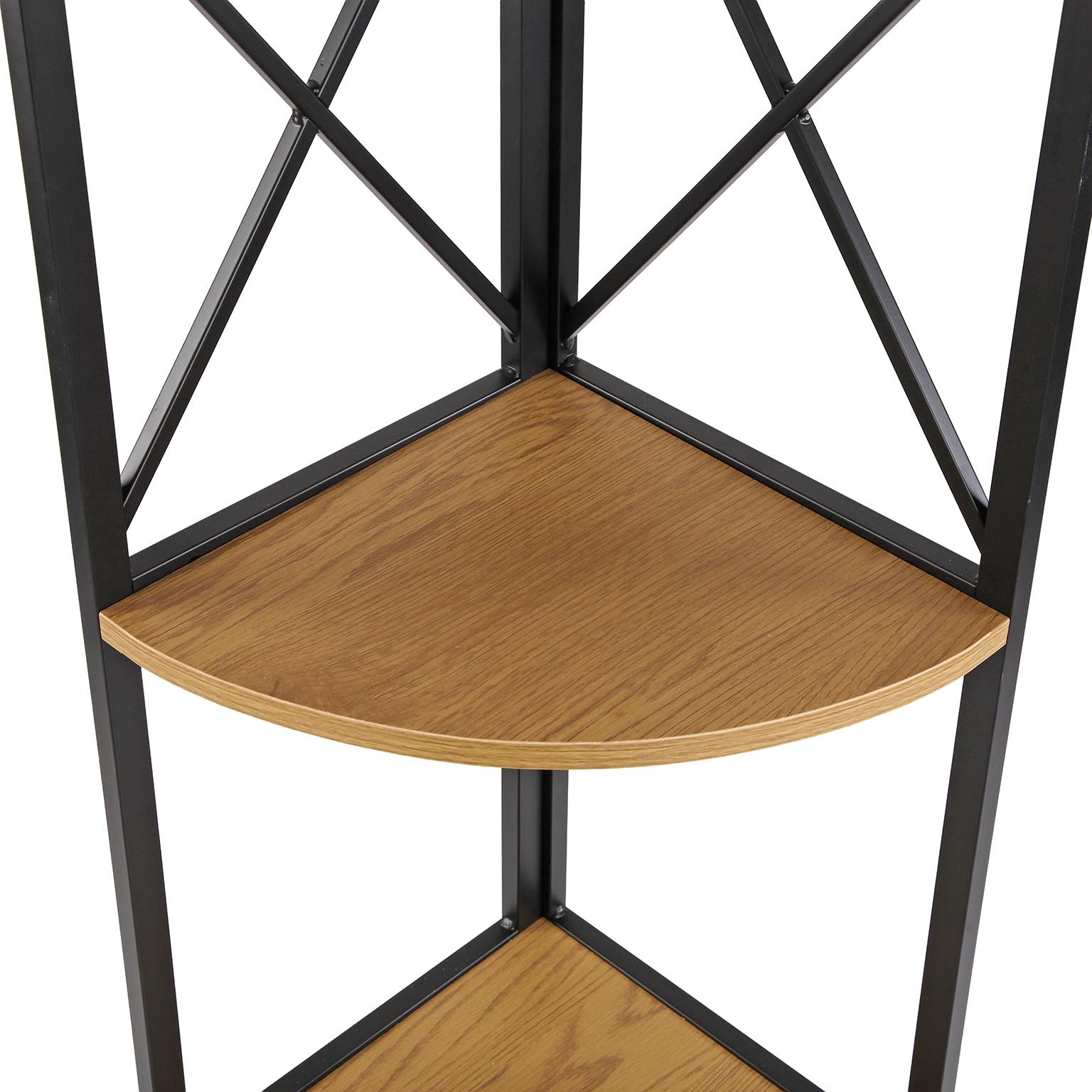 Its light wood tone shelves contrast beautifully with the black frame, complementing various decor styles.