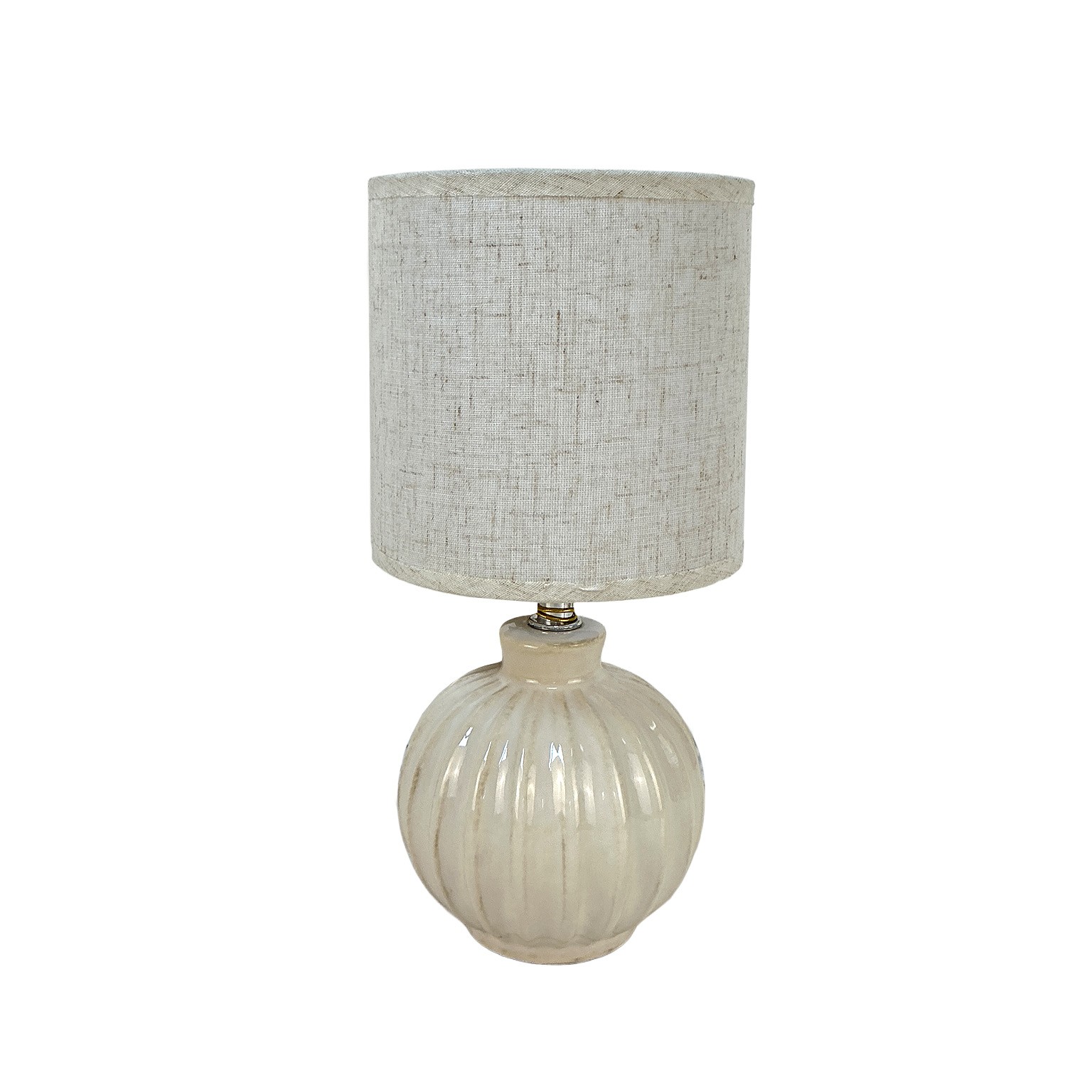 Crafted from durable ceramic with a sleek white finish, this lamp features a soft fabric shade that diffuses light beautifully.
