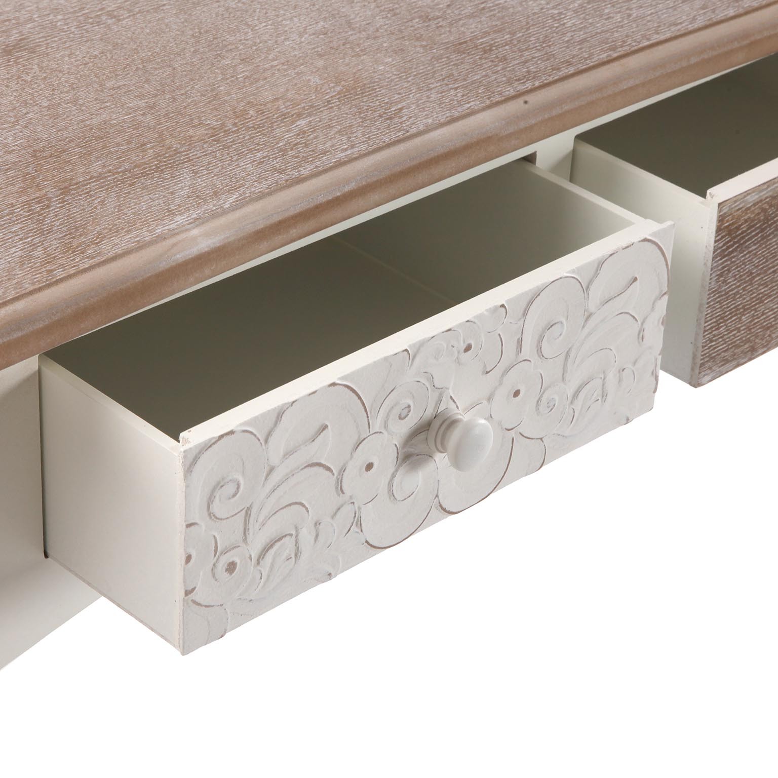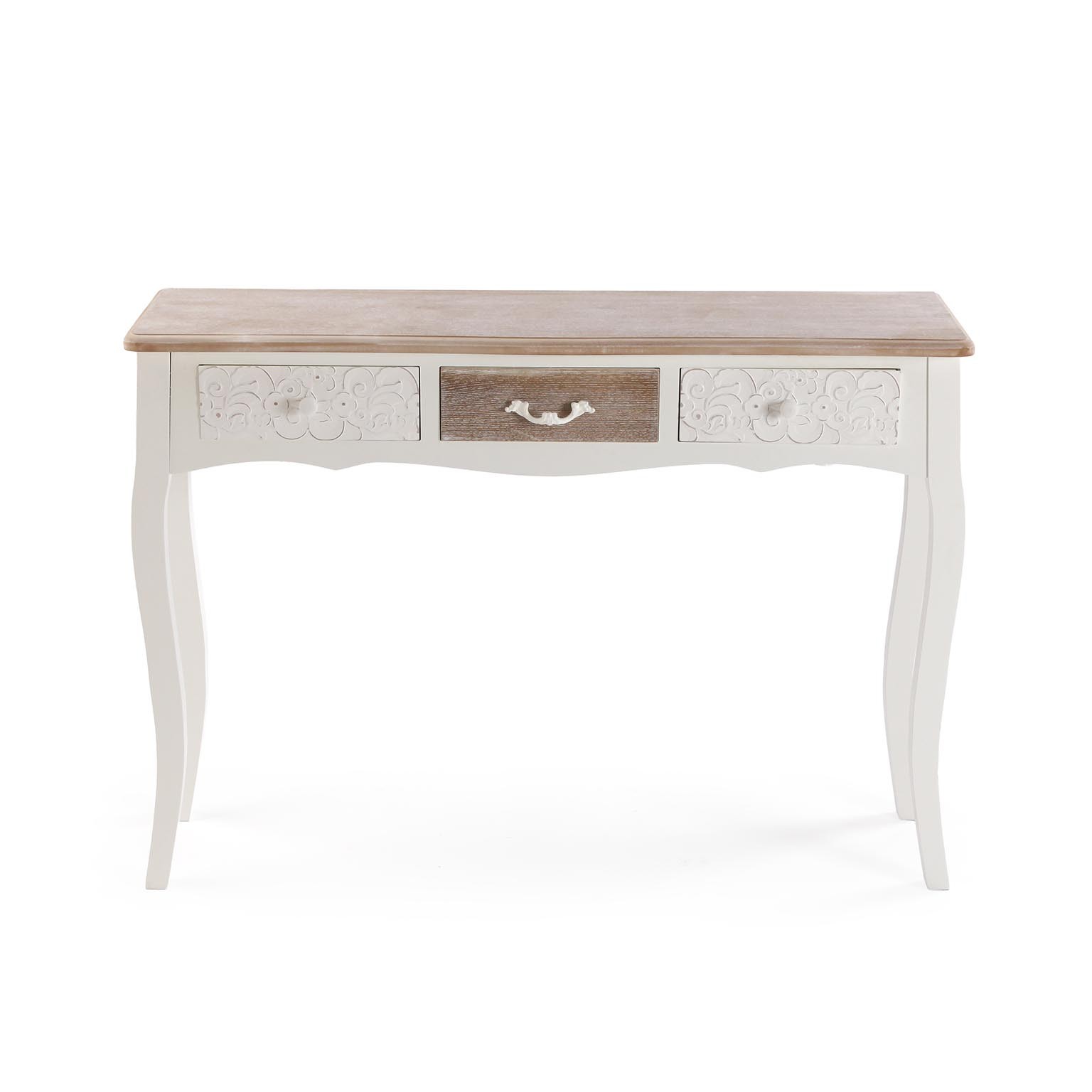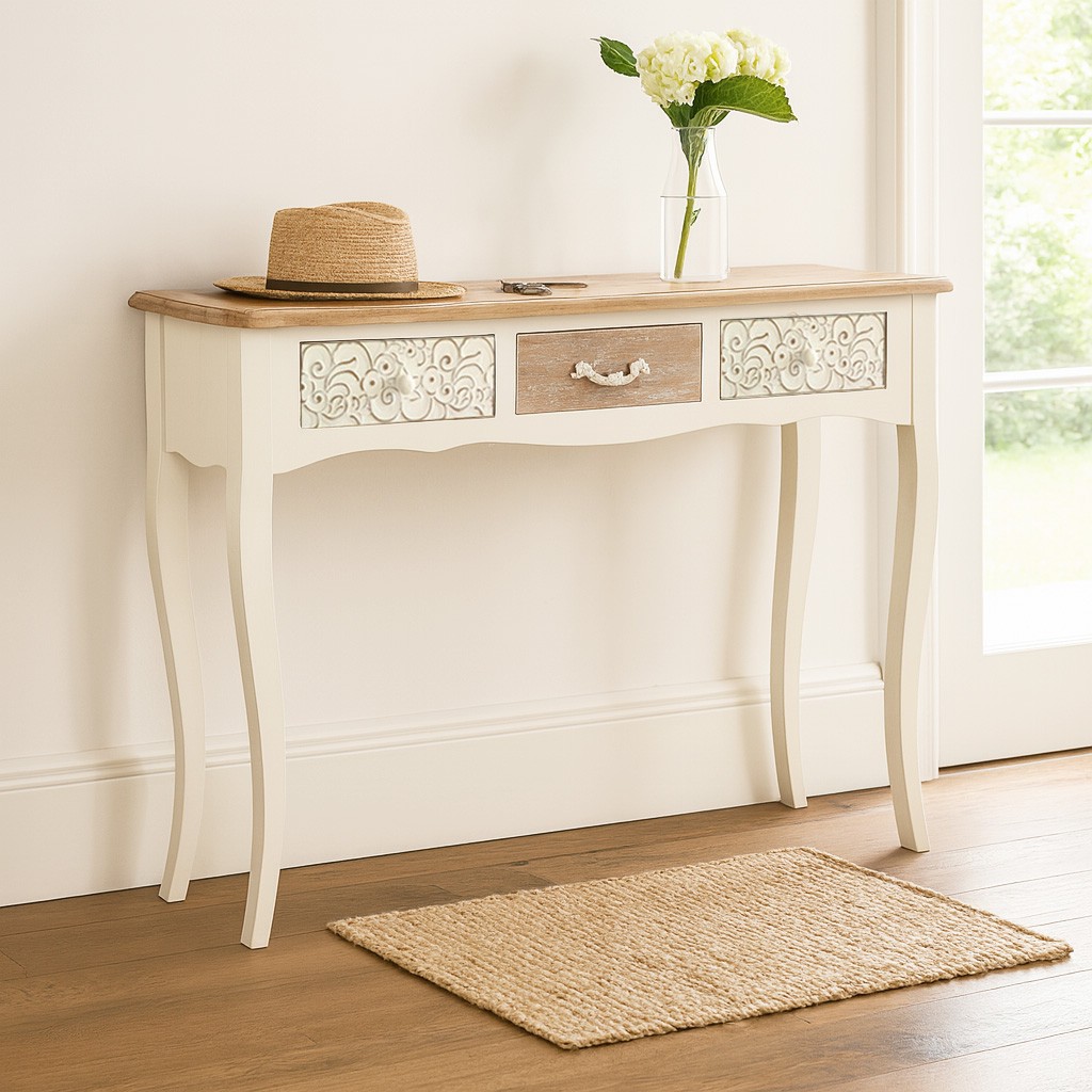 Introducing the Rustic White Console with 3 Drawers, a stylish addition to any entrance furnishing complement collection.