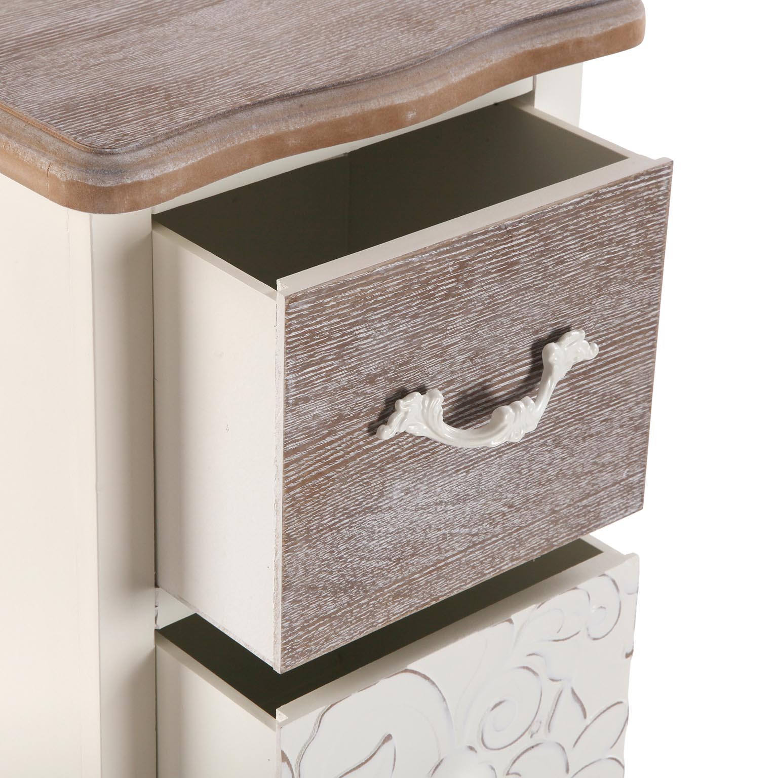Its charming rustic design, with a white finish and light brown accents, provides both functionality and style.