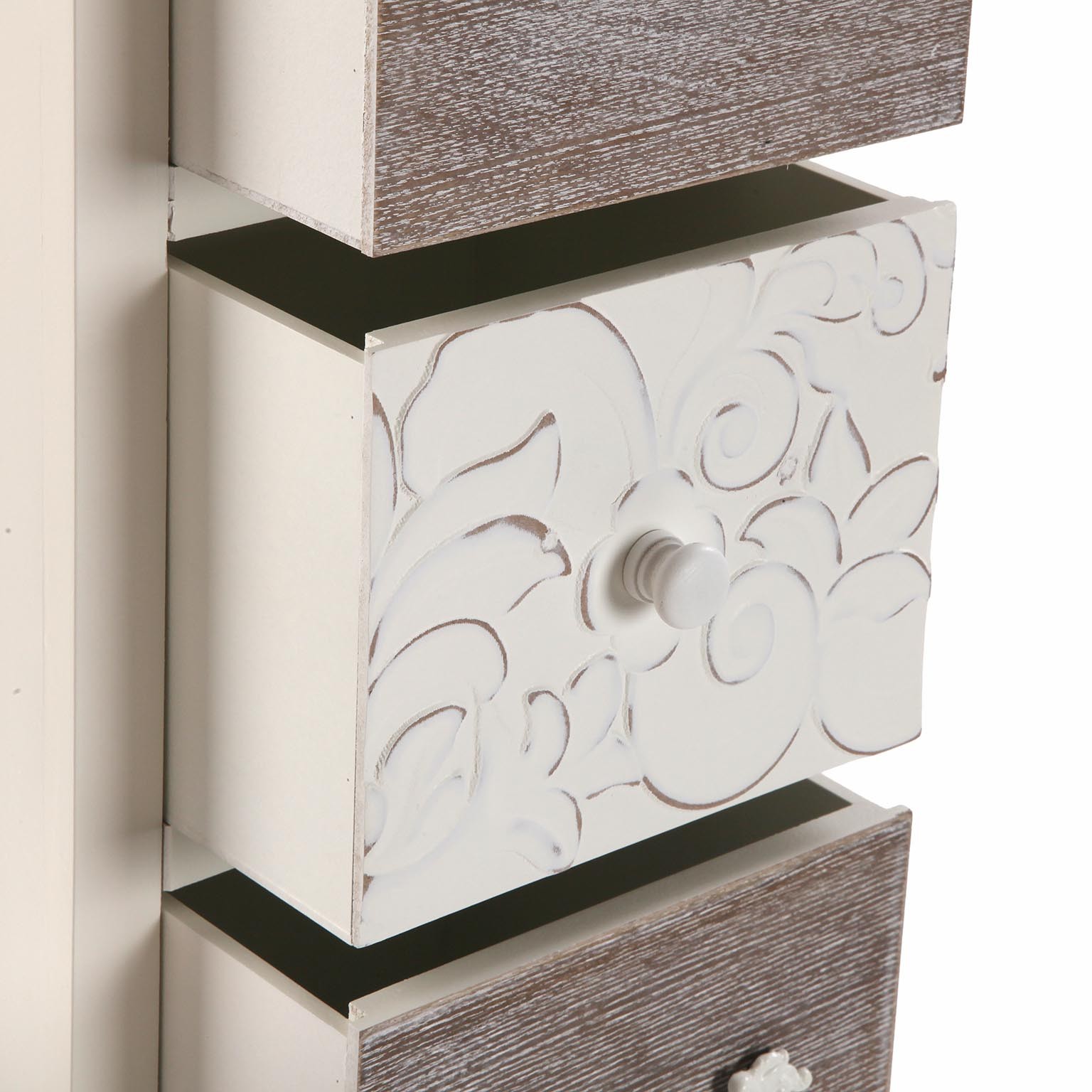 Enhance any entrance space with the Rustic White Chest of 5 Drawers.