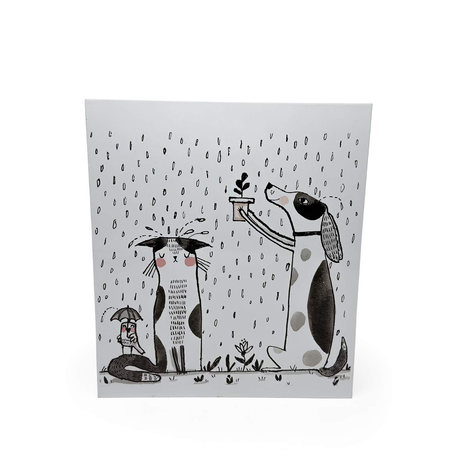 Crafted from durable metal, this stand features a playful design adorned with whimsical pet illustrations, making it a delightful accent for pet-friendly spaces.