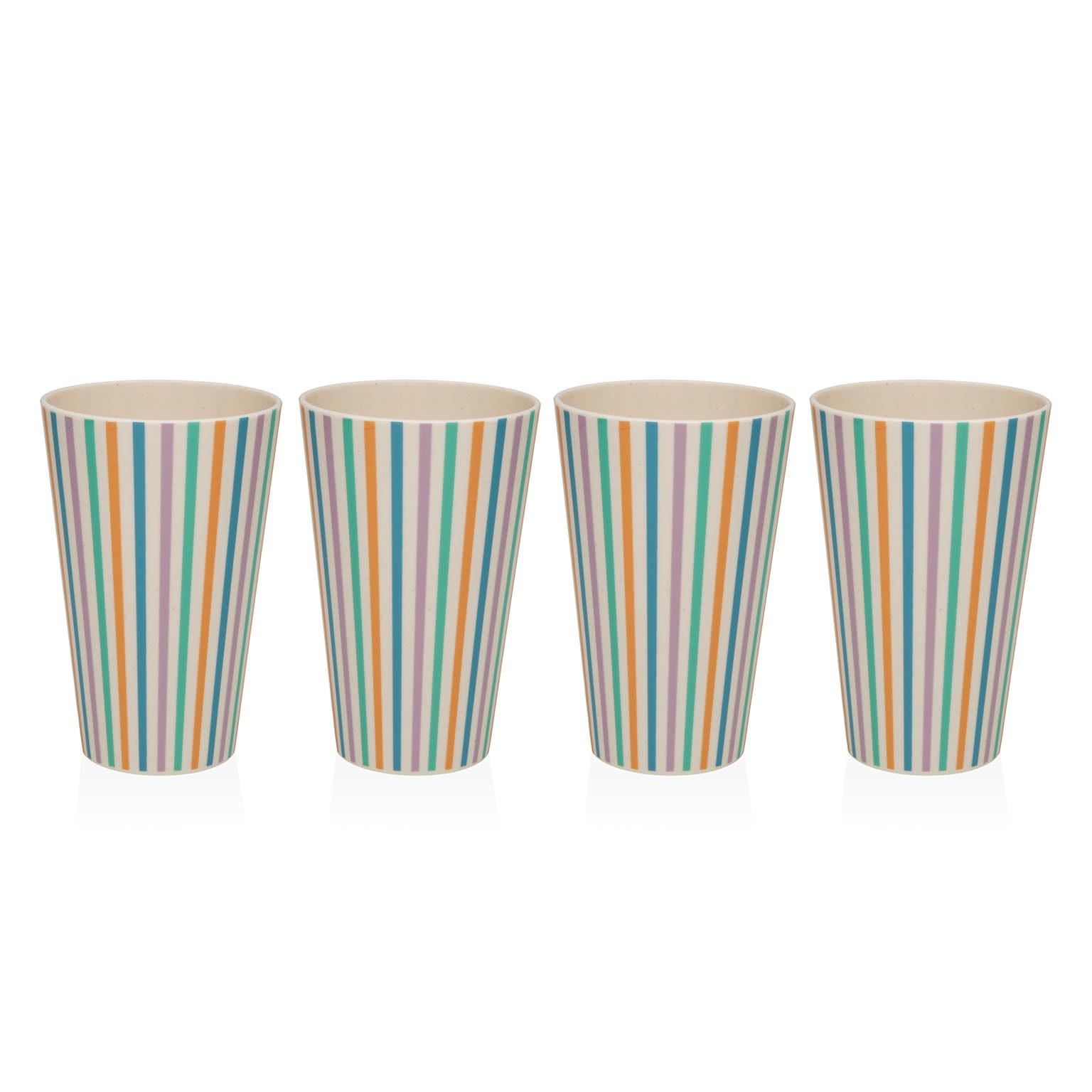 Enhance kitchenware offerings with this set of 4 striped glasses, crafted from durable bamboo fibre.