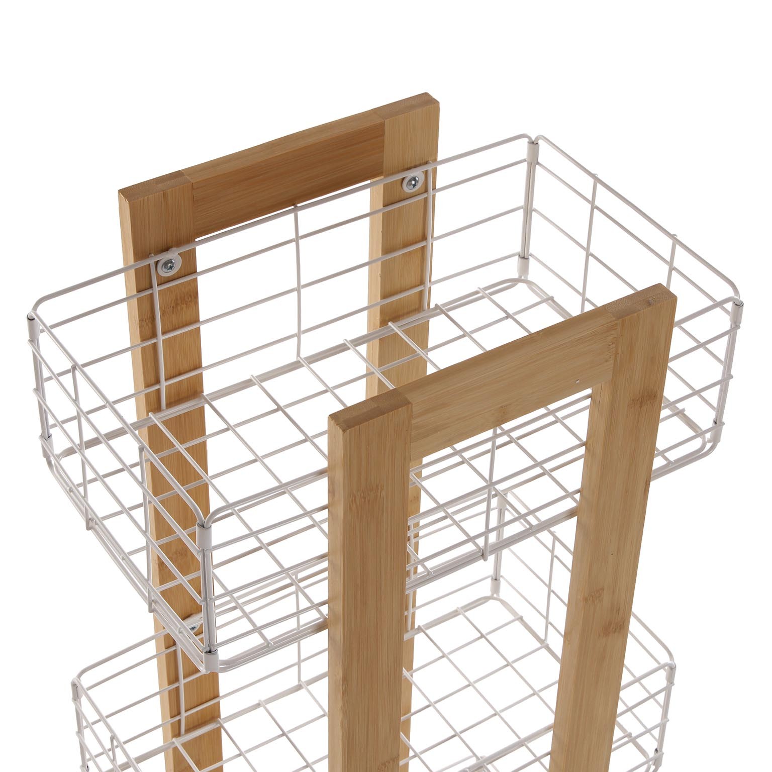 Introducing the Rectangular Bamboo Shelf with 3 White Baskets, a versatile kitchen trolley designed for modern home spaces.