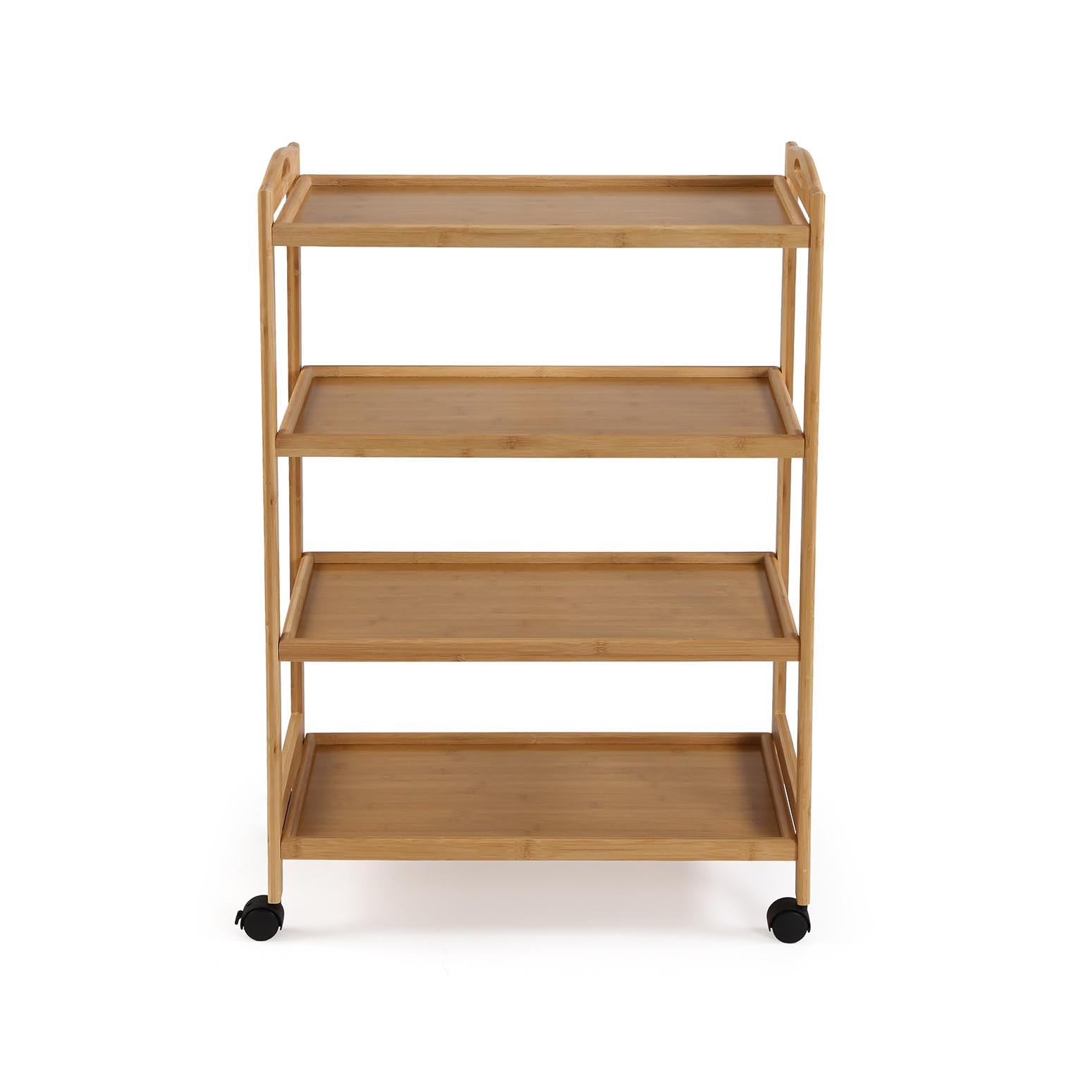 Enhance organization in home spaces with the 4-shelf trolley featuring wheels.