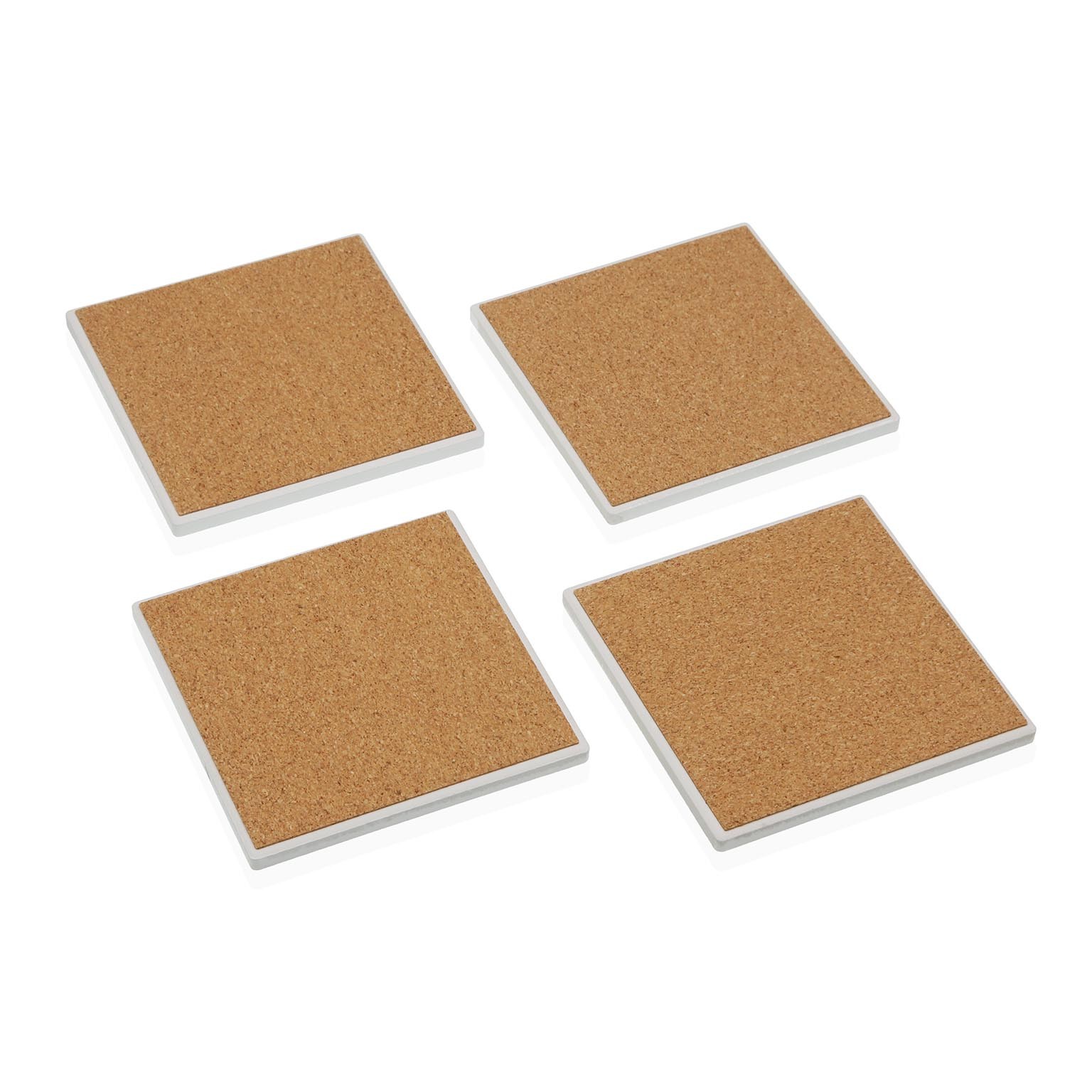 Enhance home spaces with the Set of 4 Bilbao Coasters, expertly crafted from durable ceramic with a cork base for optimal surface protection.