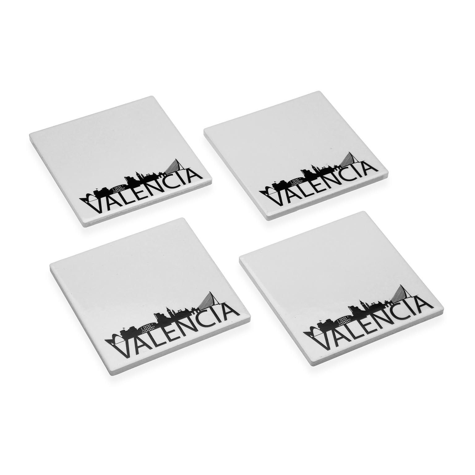 Enhance home spaces with this set of 4 Valencia Coasters, expertly crafted from durable ceramic with a cork base for optimal surface protection.