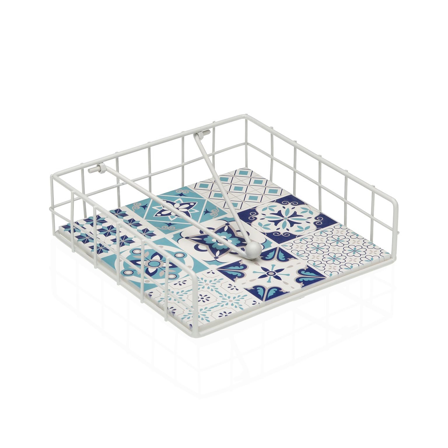 Crafted from durable iron and MDF wood, this piece features a captivating blue and white design, reflecting Mediterranean influences.