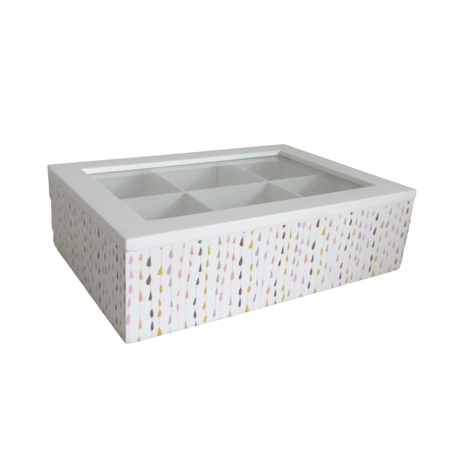 Elevate home organisation with the Cherries Tea Box, featuring six compartments for efficient tea bag storage.
