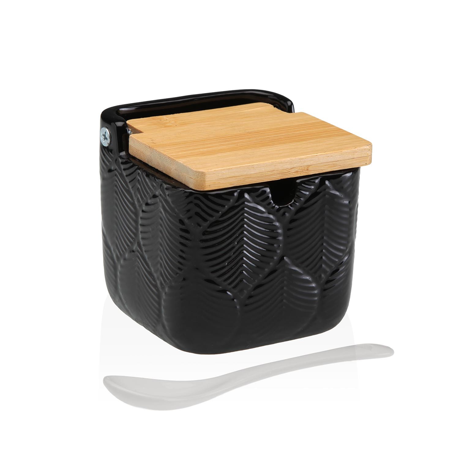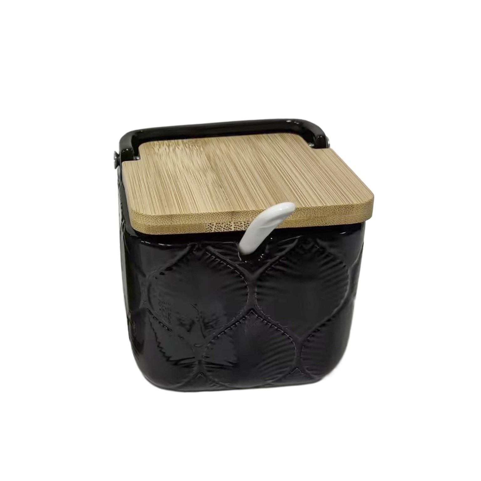 Introducing the Black Square Leaf Sugar Bowl, a modern addition to kitchenware that combines functionality with style.