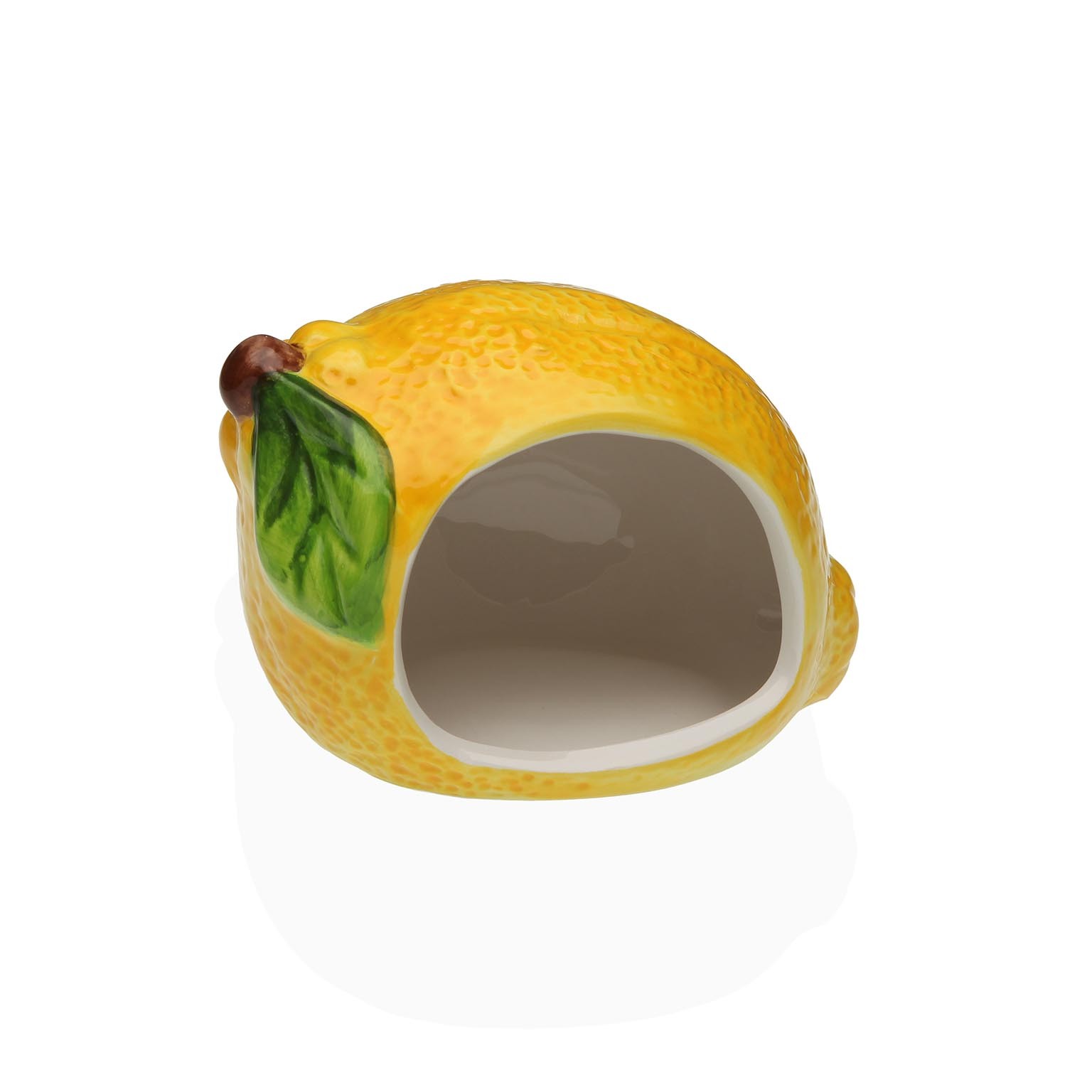Crafted from durable ceramic, this whimsical piece features a vibrant yellow lemon design with a green leaf accent.